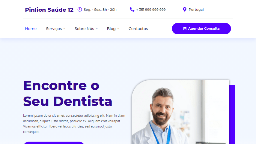 Construiremos o website com base nas informações que nos passar (imagens, textos e vídeos) e com as funcionalidades que fizerem sentido no seu caso específico (como agendamento de consultas, blog, formulários de contacto, e páginas sobre serviços, equipa e protocolos, domínio próprio, caixas de email personalizadas, etc.).